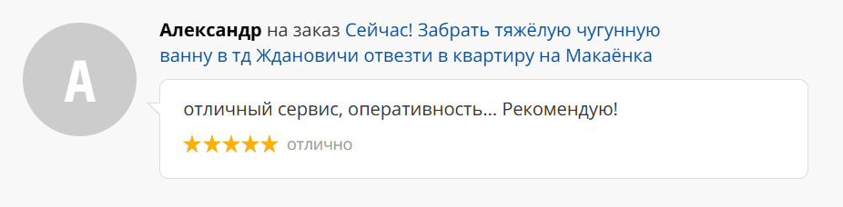 на заказ «Сейчас! Забрать тяжёлую чугунную ванну в тд Ждановичи отвезти в квартиру на Макаёнка»