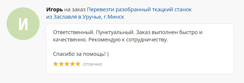 на заказ «Перевезти разобранный ткацкий станок из Заславля в Уручье, г.Минск»