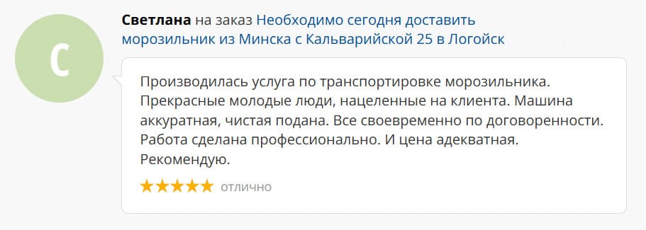 на заказ «Необходимо сегодня доставить морозильник из Минска с Кальварийской 25 в Логойск»